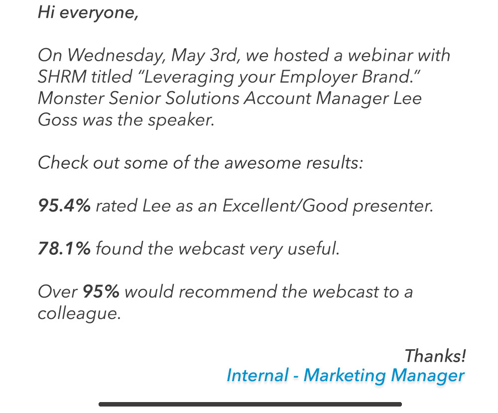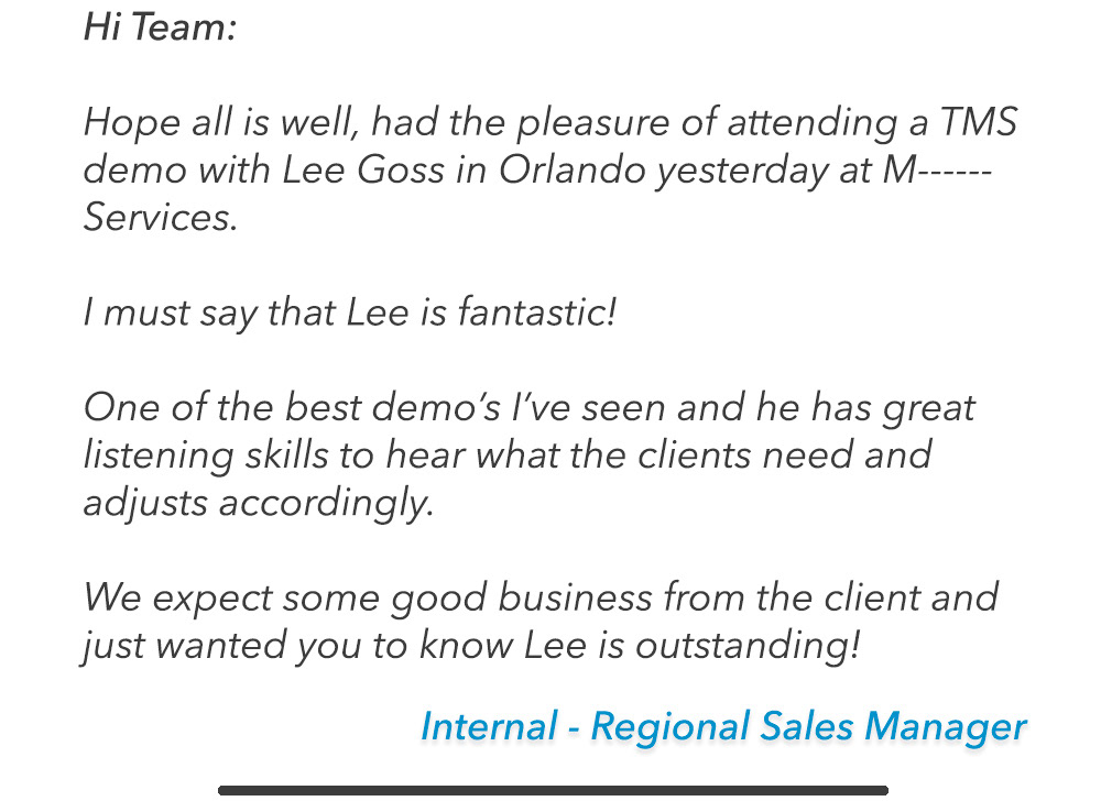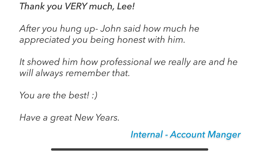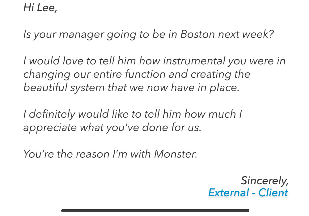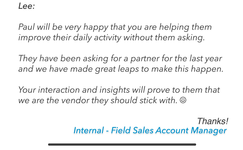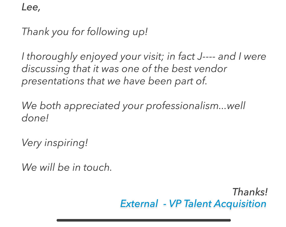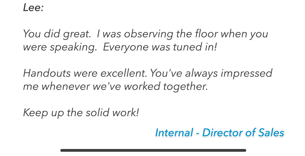 Some of the kind words that have been generously shared over the past several years from internal sales partners, prospects and clients.